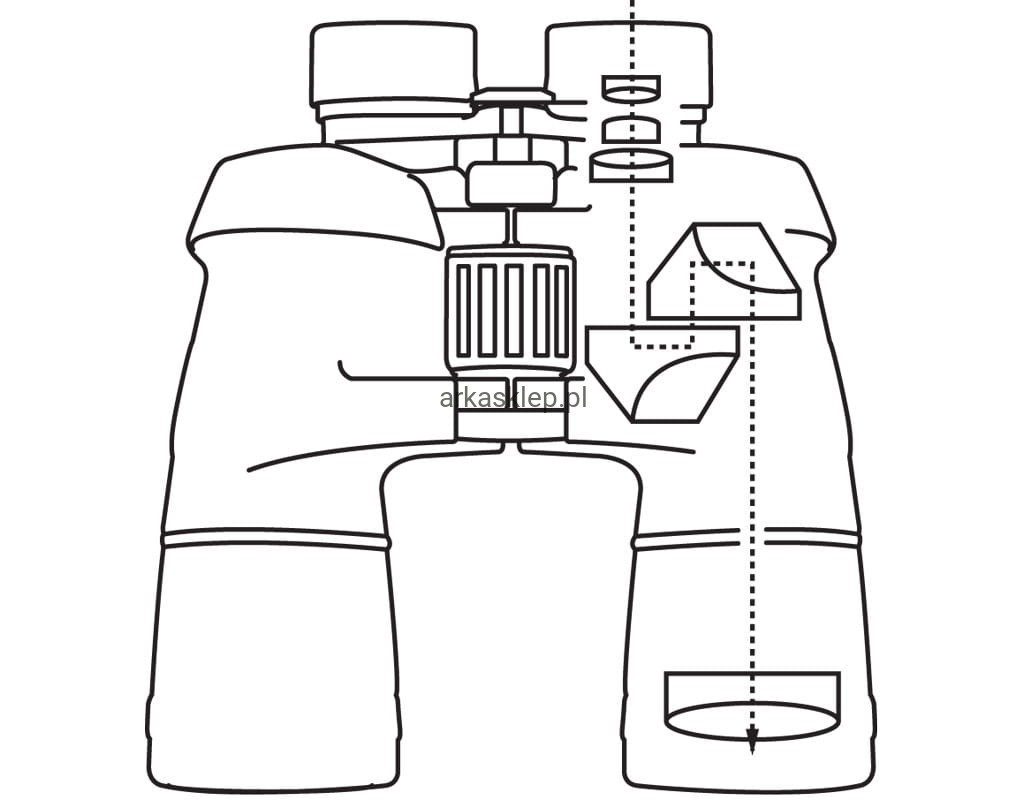 Kompensację różnic między prawym a lewym okiem zapewnia diopter na lewym okularze.