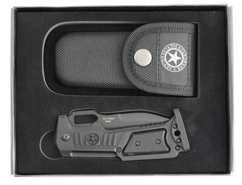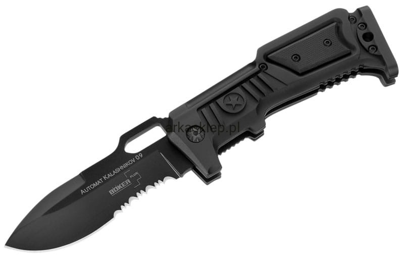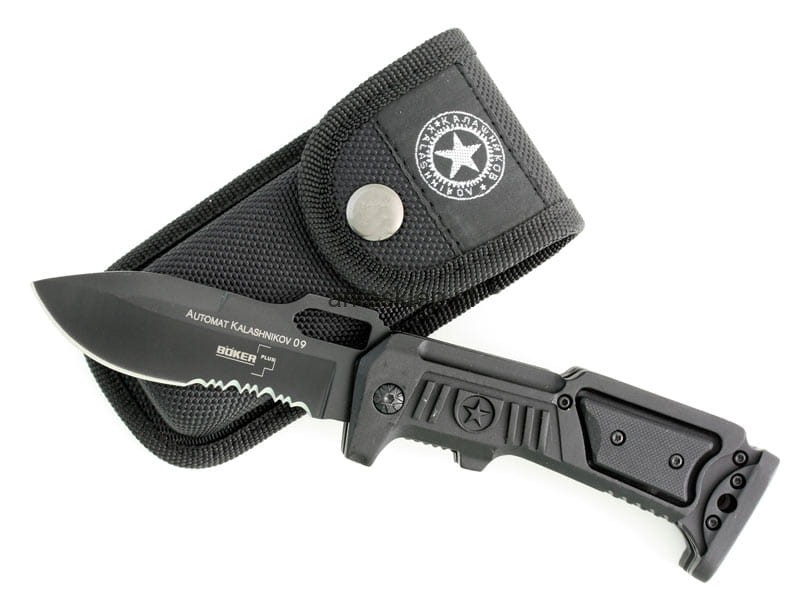 Model w palecie sygnowanej nazwiskiem Michaiła Kałasznikowa. Mocna rękojeść z aluminium i okładkami z G10 posiada ergonomiczny chwyt. Masywna klinga ze stali 7Cr17 jest uniwersalna w każdych warunkach. W zestawie etui z cordury.