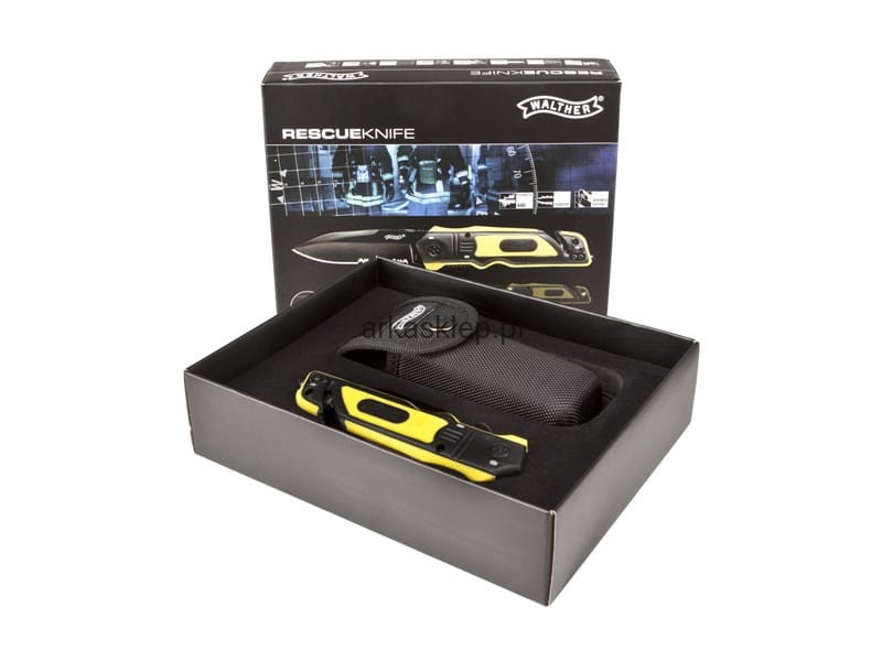 Walther ERC Rescue to zaawansowany nóż ratunkowy ze zbijakiem do szyb, ostrzem do cięcia pasów oraz odblaskowymi wstawkami pozwalającymi na szybkie znalezienie noża w ciemności. Wersja w czarno żółtej kolorystyce.